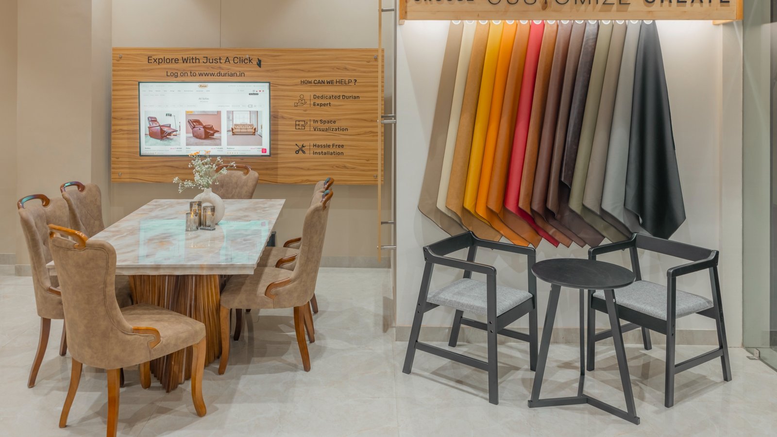 3. Search for “wooden furniture shop near me” or “furniture stores guwahati” to find the Durian showroom.
